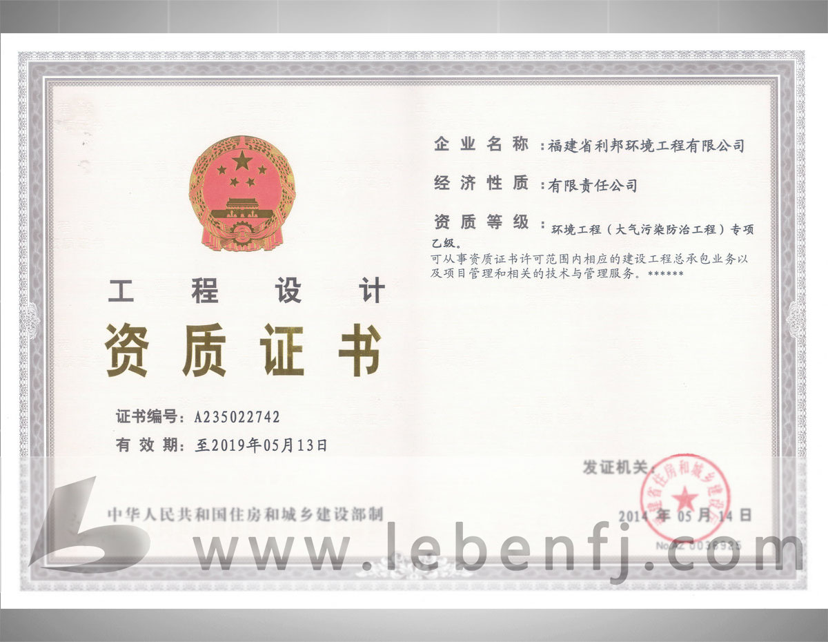 • 環(huán)境工程設計專項資質(zhì)(乙級)